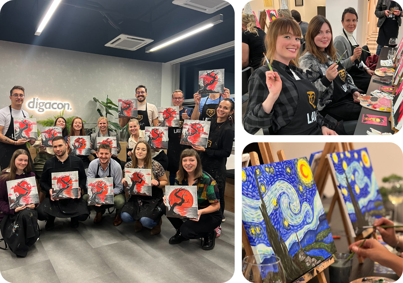 Naš teambuilding paket uključuje sve što vam je potrebno za nezaboravan doživljaj – slikarski pribor, prostor za opuštanje, osigurano piće i sve detalje potrebne za druženje u kreativnoj atmosferi. Sve što trebate ponijeti je dobar duh! Bez obzira na to jesu li članovi tima početnici ili su se već okušali u slikanju, naši eventi su prilagođeni vašim potrebama.