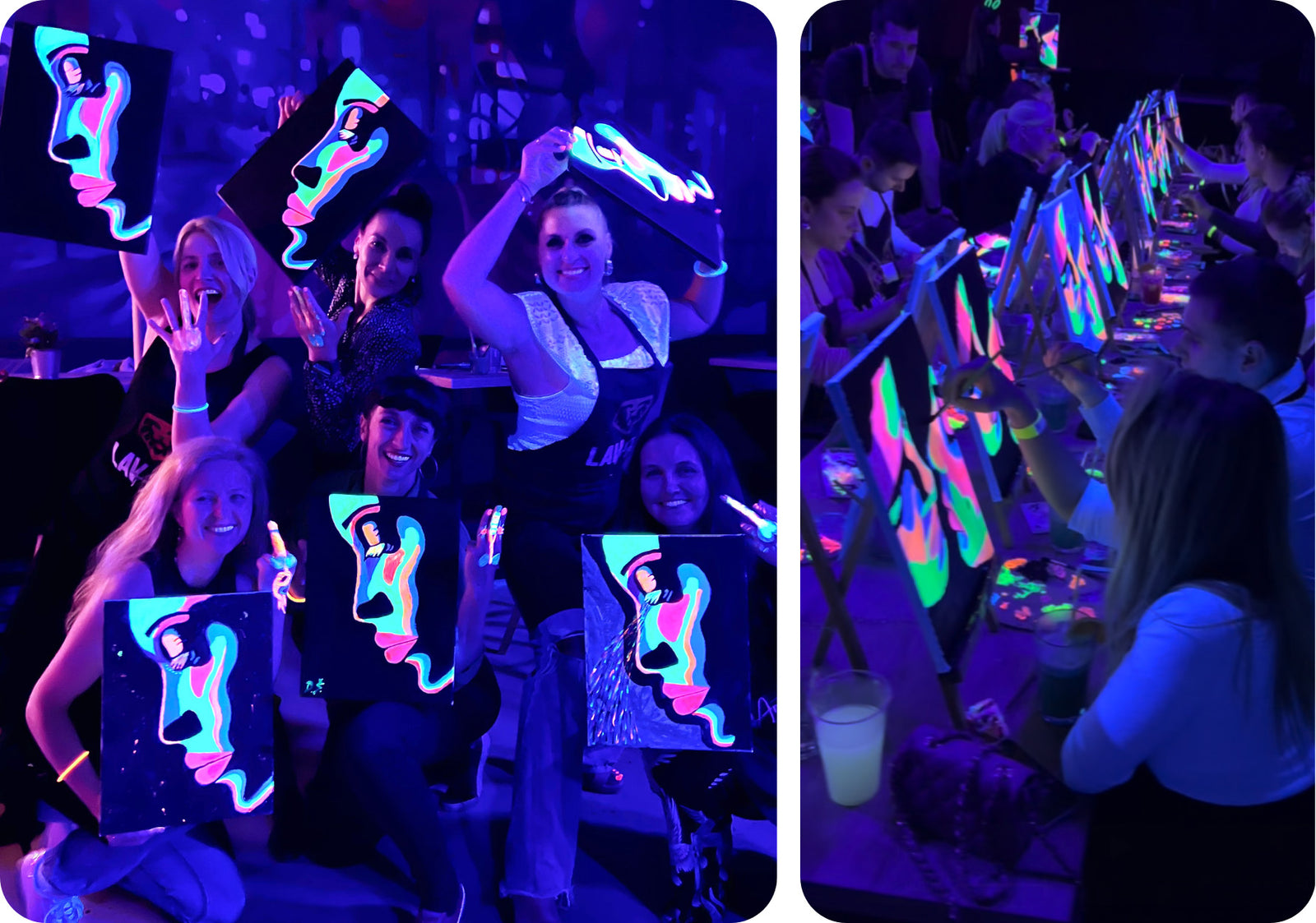 Tko je znao da se možete ovako dobro zabaviti u mraku? Družite se uz svjetleće boje, magičnu atmosferu i najfinije koktele. Neonpaint&Cocktails je potpuno novi, uzbudljiv način kreativnog provoda koji će vas oduševiti!